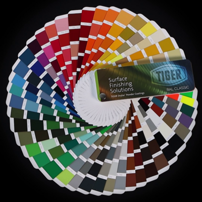 TIGER Drylac offers a RAL color fan deck (with TIGER Drylac Product IDs) which customers can order from our website at >> Customer Color Card & Panel Order Form