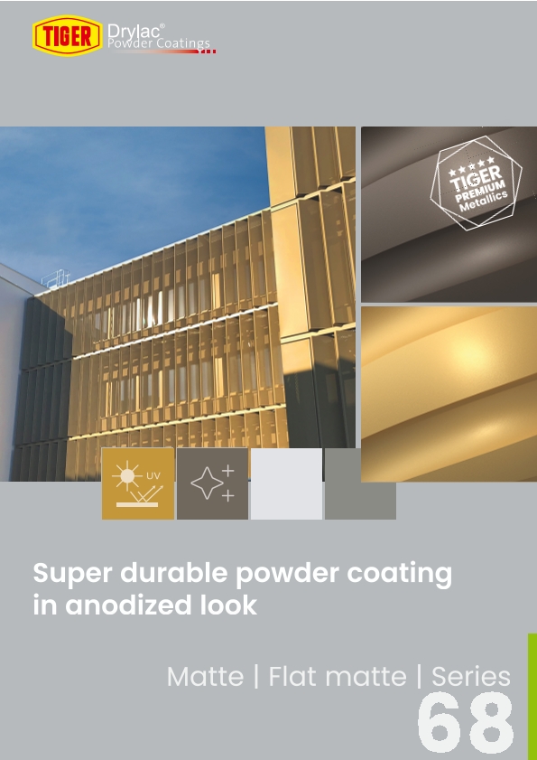 This is where the powder coatings from TIGER come into play: Our super durable TIGER Drylac® Series 68 product line underscores the high demands of the architectural and facade industries for performance of building envelops worldwide. The anodized portfolio includes numerous shades for smooth finishes in matte and flat matte aesthetic. The application is not limited to aluminum. Steel and galvanized steel can also be coated in a refined anodized look—cost-effectively and in just one coat.